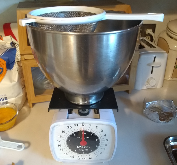 The point of that is that the brown sugar is old – and therefore has rocks in it. Sifting it through the sieve will get rid of them. I was being clever and doing it directly into the mixing bowl in order to not dirty another dish. Nice idea, but I ended up using the dish I “saved” by this to thoroughly beat the egg.