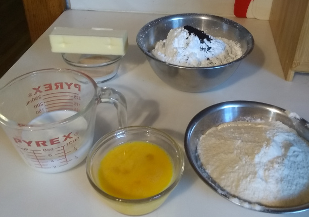 In yet another failed attempt to save a bowl, I dumped the mix into the mixing bowl. I then had a prophetic vision of it flying everywhere when I turned on the mixer. I poured it back into a spare bowl.