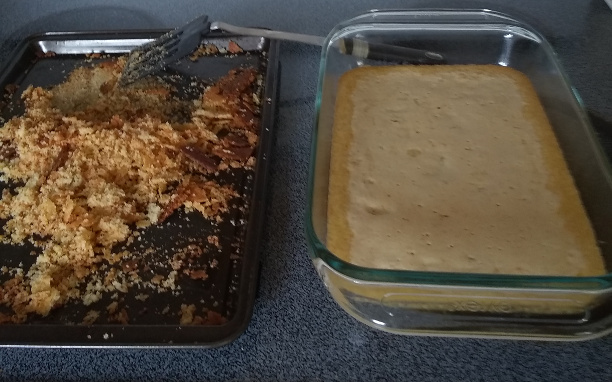 Greasing the sheet would have probably helped. They are yummy crumbs. Mike suggested serving them over ice cream, which I think is a brilliant idea. I did mention that there is a Safeway just two blocks away, right?