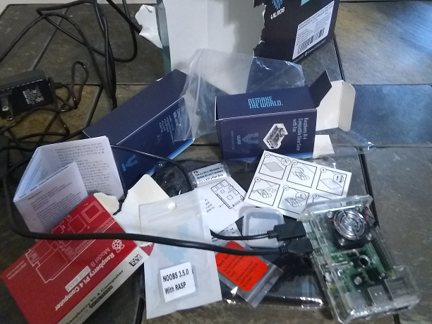 “Inserting and Removing SD Cards” seems obvious. This was supposed to come with one. Let’s see… It has a warning that the preformatted partitions make it look small on a PC and a URL for more details. It also comes with “a SD to USB adapter to Re-flash SD card if necessary This is NOT a Flash Drive”. Since this is the only persistent storage the thing has, I see no harm in giving “N00BS 3.5.0 With RASP” a whirl. I can always try the OS formerly known as Raspbian, later. Ah. More reading ahead – N00BS only exists in order to get Raspbian. OK then.