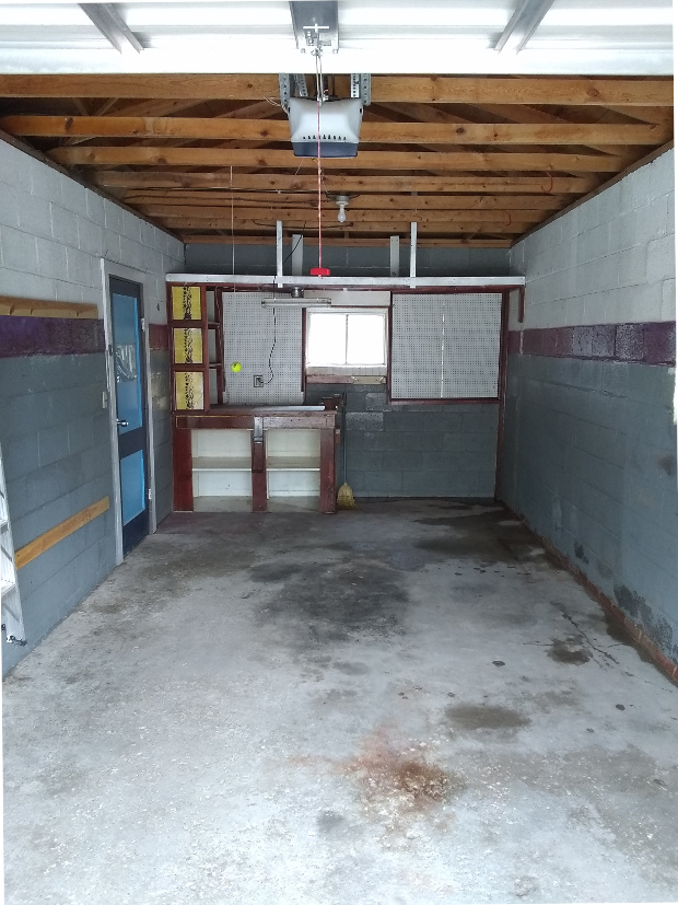 It still needs a new door (steel frame, big smoked glass window, keypad entry), a new overhead door (insulated, windows, better sealing), window replacements (no idea, yet), and insulation to keep heat from going through the roof. But, usable. On to the Breezeway!