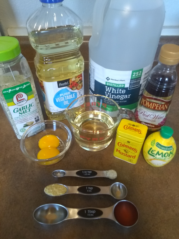 1 tsp mustard (not for taste; it holds the emulsion)