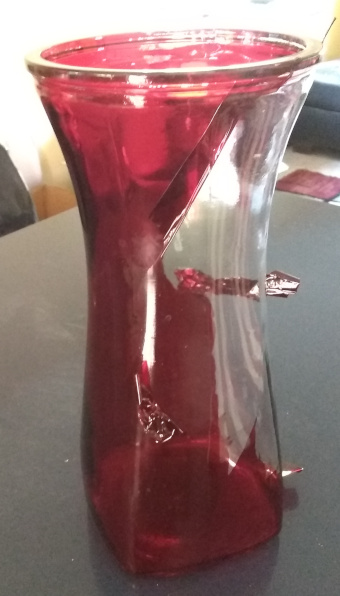 Apparently, red glass is no longer red glass. It’s clear glass with a non-dishwasher-safe, red film over it.