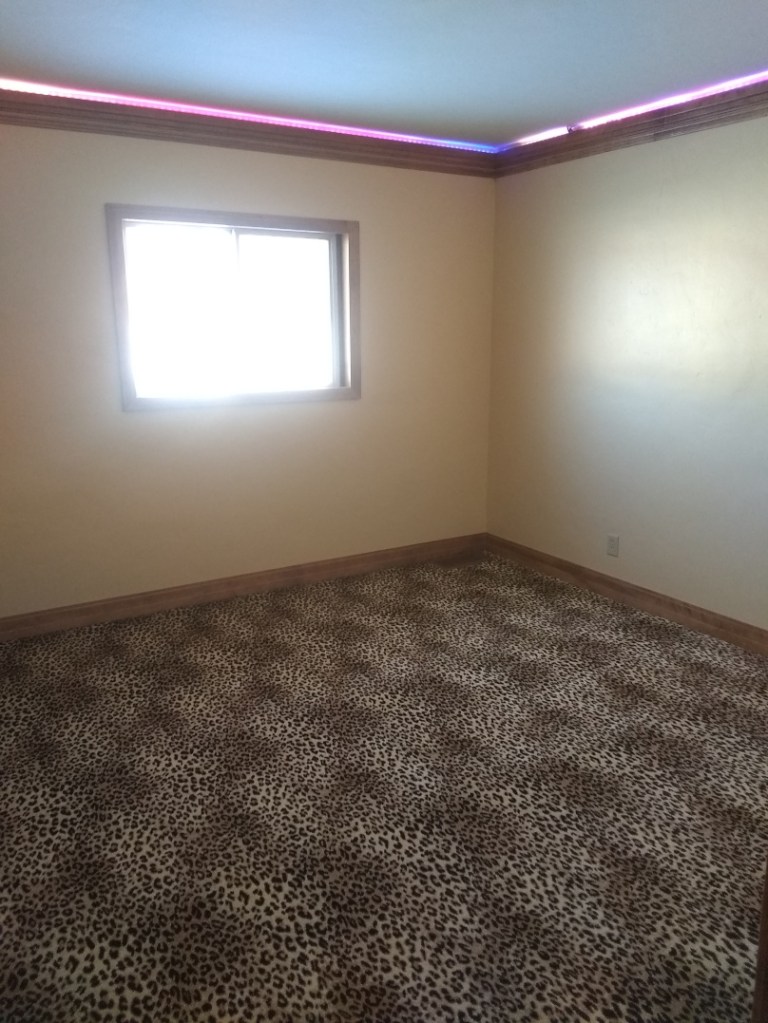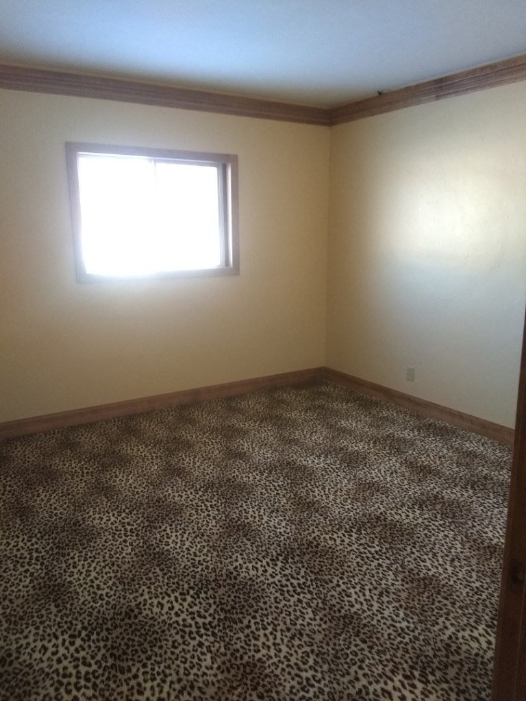 We replaced the baseboards, trim, and door (not shown). We added the coves (“crown” moulding is curved up onto the ceiling; “cove” moulding is upside-down baseboard) and a closet door (not shown). I also patched the cracks in the walls. One of the few things I’ve done myself. They’re probably going to re-crack and $5000/room is just way too much for a couple days of work.
