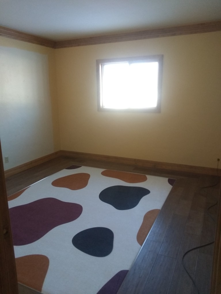 The white/unpainted spot is because there will be a wallpaper mural there. I need to size the wall. That should have been done before the floor, but I didn’t get to it.