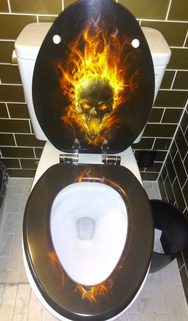 The only thing left to deal with: The toilet seat. Hardware stores – at least here – have a horrible selection. Walmart, Target, and Bed, Bath and Beyond were no better. How did we live before Amazon? Sears & Roebuck, I guess. Whimsy struck, again.