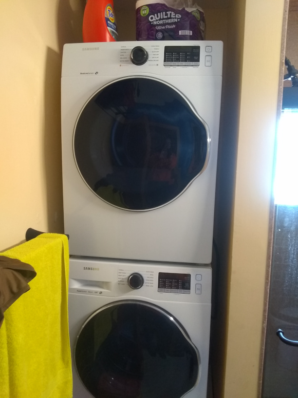 To begin at the beginning, the laundry room is not accessible from inside – neither from upstairs nor downstairs. Going outside to do laundry is inconvenient. The “I’m not doing laundry, it’s below zero out there” days add to that. So, we wanted laundry machines inside (they are “inside” a utility room that has no interior access). There are limited options for this – especially since the furnace is in the closet on the wet wall.