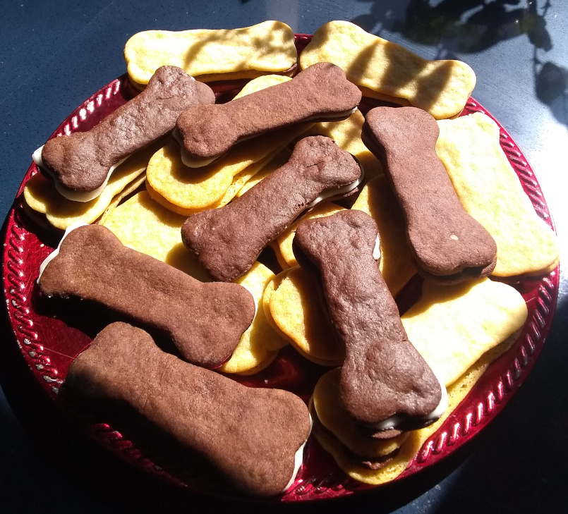 A friend is having a birthday party for her dog. What better thing to bring that dog-bone shaped chocolate cookies? Yes, I know about dogs and chocolate; they’re not for the dog.