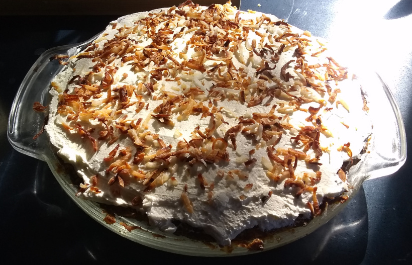 This pie served two purposes: Another test of the new crust recipe and getting rid of leftover coconut. Well, three purposes, I suppose: It also got eaten.