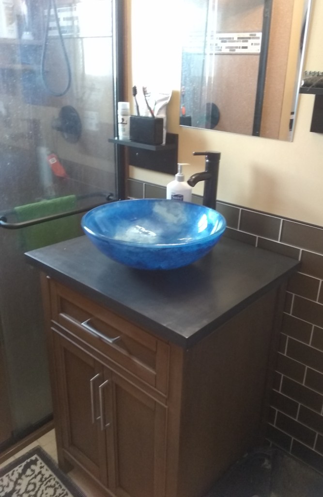 But I still liked the vessel sink – and had painted the accent wall to match.