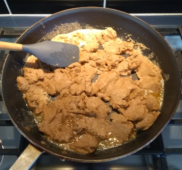While it’s warm, it’s very easy to form. I think individual pettifor-sized servings might be better. I happen to have some ice cube trays that are actual cubes, about an 1.5″ on a side. That seems worth trying. I do need to make this again – or discover something else to do with a pound of tiger nuts.