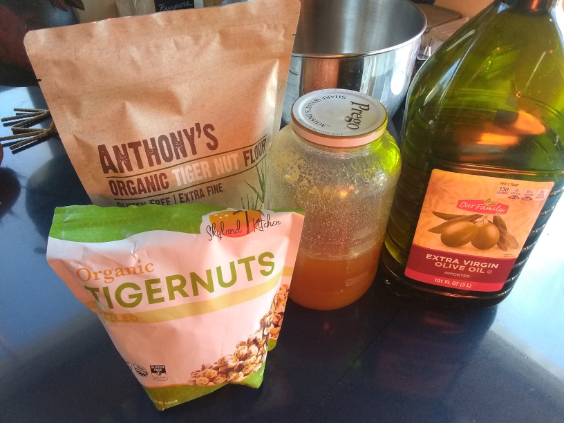 The Laird ordered both the whole ones and the flour. The bag of whole ones is open because one can just eat them, so we both tried them. They’re very fibrous. I used the pre-floured. I even sifted it because I’m pretty sure that chunks of caked flour will not taste the same as chunks of tiger nut.