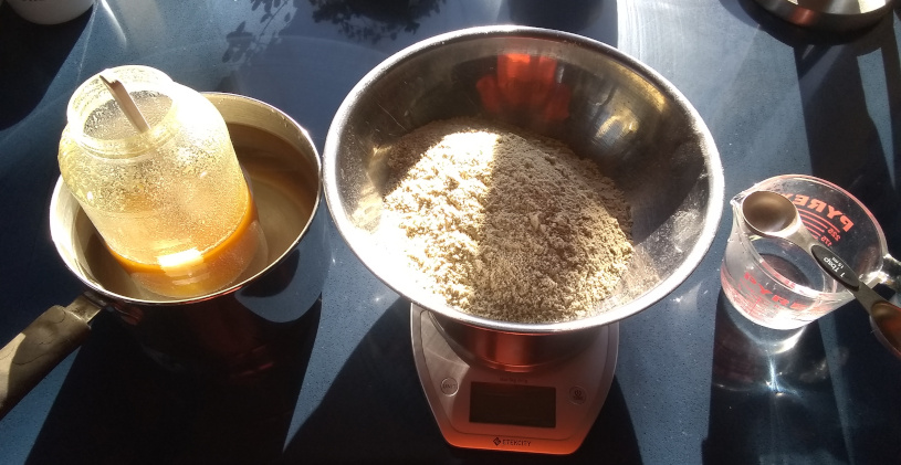 How do you mix flour, honey, and water without making an insane mess? It turns out that one’s hands work just fine. I had to wash them afterwards, but the dough was surprisingly easy to handle.