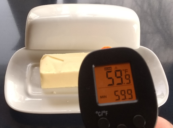 I checked the temperature of something not attached to anything – a pendant light over the counter. It was, as expected, 71.2 degrees. Then I checked the butter temperature.