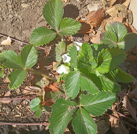 Of course it’s the first blossom, not the first strawberry. It’s still mid-April.